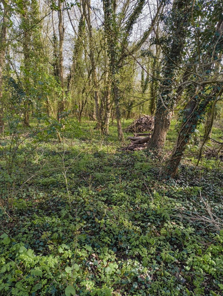 Botanical surveys in our urban woodland site in March 2026 recorded 38 species, showing that this is a valuable area for biodiversity too. The existing trees including Silver Birch, Cherry, Field Maple, Ash, Elder and Blackthorn are regenerating as saplings sprout through the undergrowth and leaf litter.